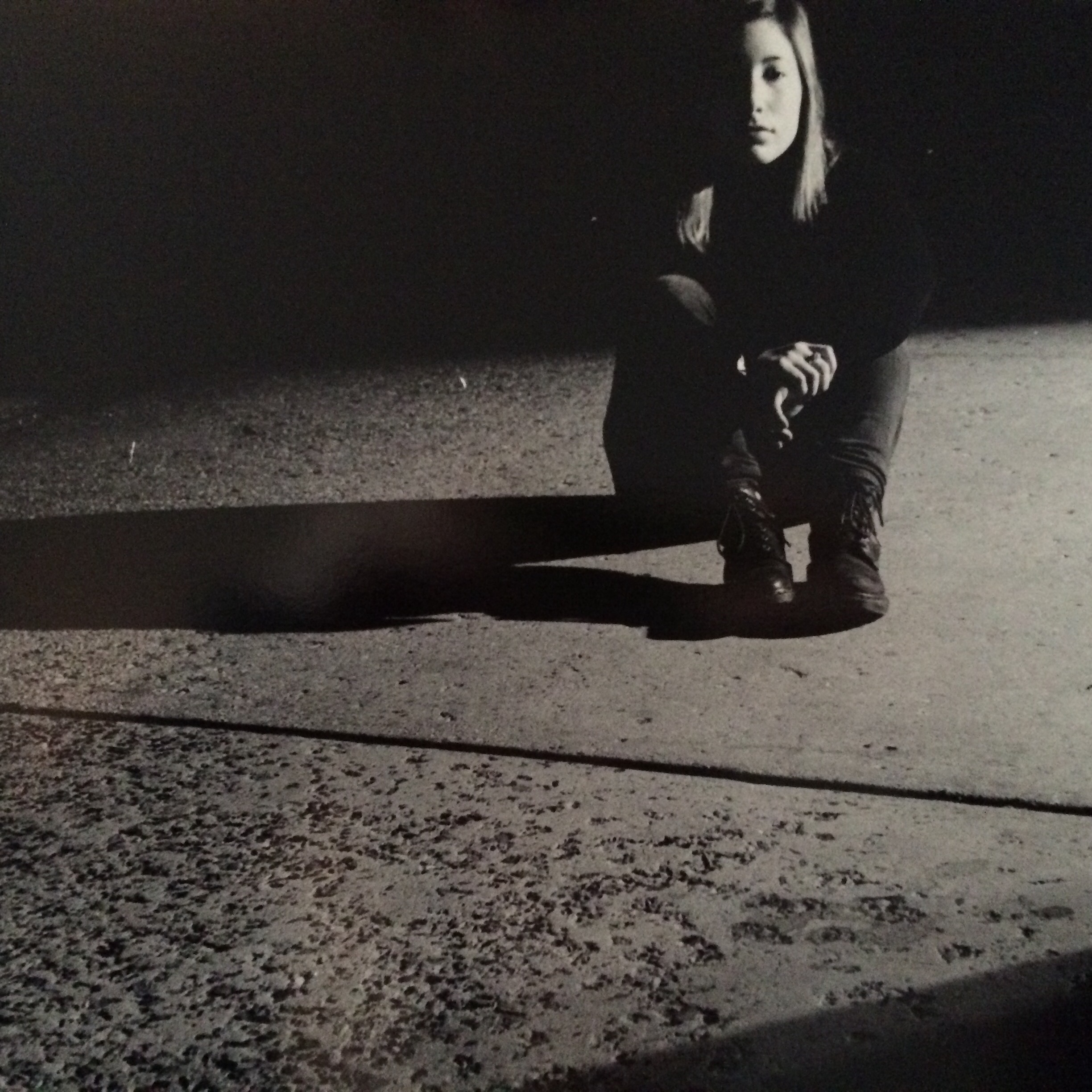 Description: A world of complete darkness envelopes the atmospheric haze. A black suffocation takes over as the last sliver of hope and the last trace of light swiftly sneaks away. The pavement, cold to the touch without the warmth of a gentle light, becomes cruel and unwelcoming. Yet, the supporting ground is the only sense of security as everything surrounding you starts to fade into the belly of blackness. Half of you begins to fade into the darkness as well, while the other half is illuminated by the dim glow that could disappear just as quickly. Darkness and light, shadow and form, and wholeness that soon disperses into the half that is now lost. The boundary between the two worlds is revealed.